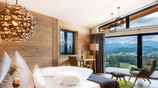 herrlich luxuriösen Alpin-Lodge-Suiten übersetzen das STOCK-Feeling in Räume mit Charakter.