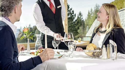 6-gängigen Dinner-Kompositionen machen das 5 Sterne Hotel in Österreich Tirol zum Treffpunkt für Gourmets. Auch spezielle Diätwünsche werden selbstverständlich gerne erfüllt.